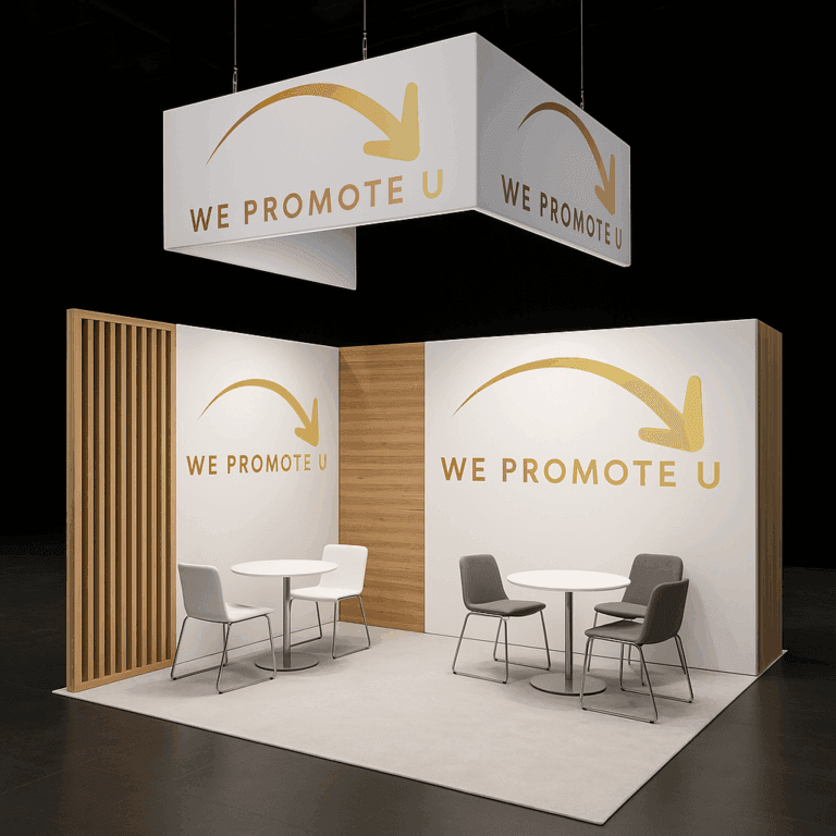 We Promote U leverer messeutstyr og messestands i alle størrelser – tilpasset ditt behov og budsjett. Enten du ønsker en liten og enkel stand for å være synlig, eller en stor og kompleks løsning som virkelig imponerer, finner vi riktig format og utforming for din bedrift.