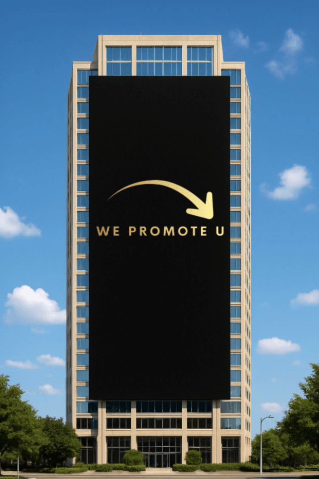 We Promote U AS leverer vi bannere i alle størrelser og formater – fra mindre reklamebannere til store løsninger som dekker hele bygninger.